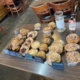 Found this place just randomly looking for some quick bites off the freeway. Walked in and first thing I see is a table full of yummy goodies like muffins, pastries and such. The place was busy which is always a good sign. I was greeted promptly and asked for a blueberry muffin to go. The offered to heat it up with butter...oh yeah! A very warm fresh delicious blueberry muffin with melted butter on a frigid winter morning was exactly what I needed to hit the spot. Price point was good and also a nice clean restaurant and bathroom. The folks there were very friendly and enjoyed nice conversation.